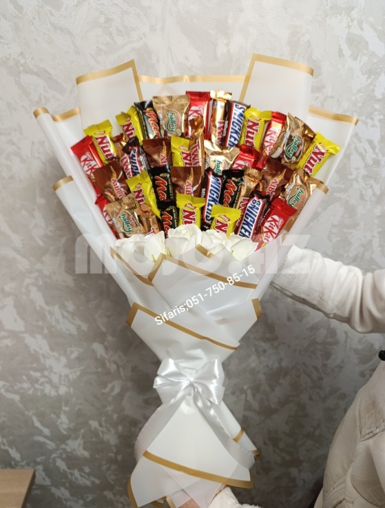 Sokolad buketleri istenilen formada,olcude ve istenilen dizaynda hazirlanir.Sifaris en az 1 gun onceden goturulur.Sifaris ucun whatsapa yaza ve ya zeng ede bilersiniz.