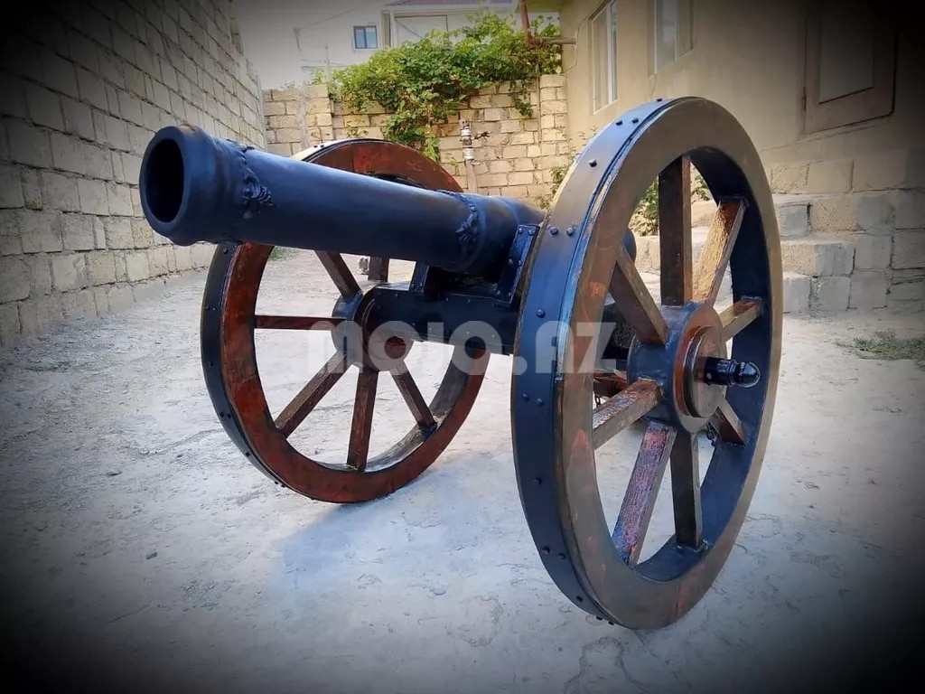 14-15ci əsirlərə aid olan topun prototipi .əl işidir.lülə hisəsi beton turba uzerinde işləmədir təkərləri və gövdə hissəsi agac və metal konstruksiyalardan ibarətdir. Təkərlərin hündürlüyü 80 sm topun ümumi uzunluğu 180 sm dir.Onu da qeyd edək ki, bu bir maketdir. Yalniz real alcılar narahat etsin. |