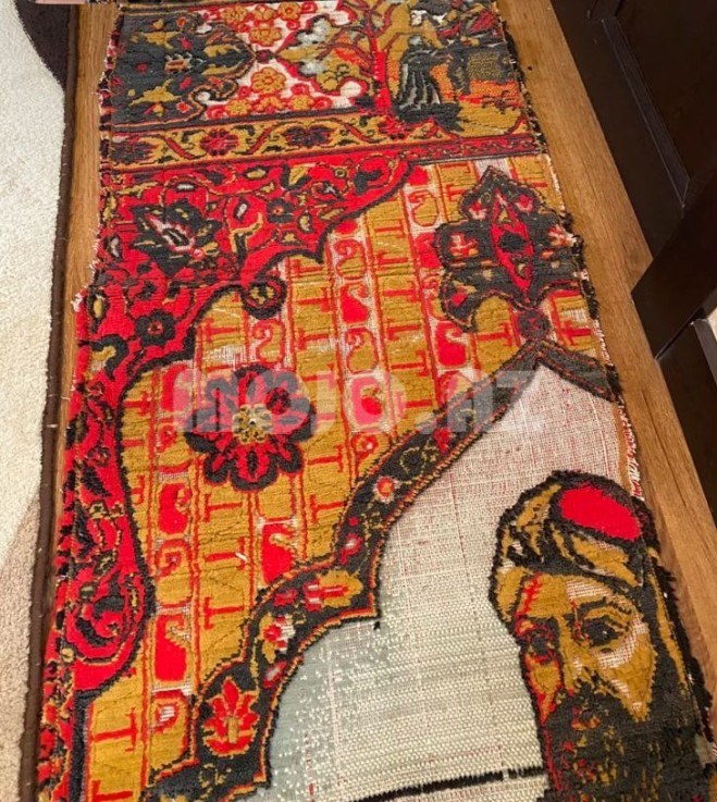 Qədimi xalça. Nizami Gəncəvinin və xəmsə təsvirləri olan xalça. 20 - ci əsrin xalçasıdır. Gəncə xalçası.