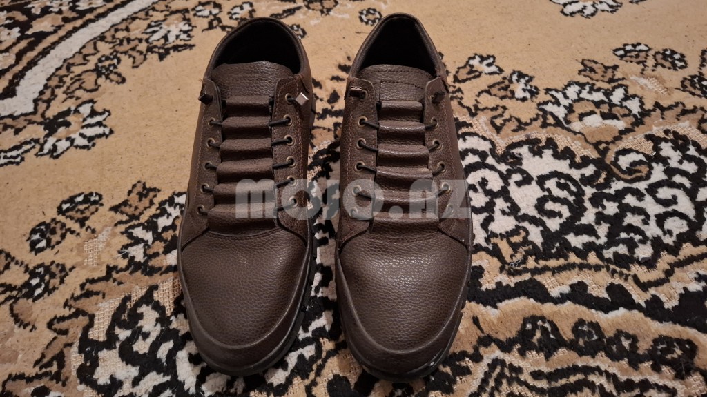 Qəhvəyi rəngdə dəri materialdan hazırlanmış kişi ayaqqabıları. Bağcıqlı dizaynı sayəsində ayağa rahat oturur. Gündəlik istifadə üçün idealdır. Çox az geyinilib, ayağıma balaca gəldiyi üçün, daha geyinə bilmirəm. |
