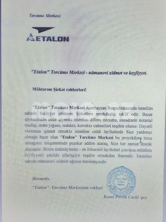 Diqqət! Ucuz Tərcümə xidmətlərini yalnız “Etalon” Tərcümə Mərkəzi təqdim edə bilər. İstənilən mövzuda dissertasiya işlərinin, məqalələrin, kitabların, sənədlərin ingilis, türk, rus dillərindən azərbaycan dilinə və əksinə süərtli və keyfiyyətli tərcüməsi yerinə yetirilir. İngilis biliklərinin səviyyəsi 1C və İE LTS 7.5 olmaqla ən mürəkkəb mətnlərin tərcüməsi mümkündür. Həmçinin ay ərzində 1500 səhifə olmaqla kitab tərcüməsi ilə bağlı sifarişlər qəbul olunur. Materialın həcmi böyük olduğu halda ümumi qiymətdən güzəşt olunur. Sənədlərin tərcüməsi və notarial təsdiqi xidməti təklif olunur. Akademik işlərin yazılması da bizim fəaliyyət sahəmizə daxildir. Saytların tərcüməsi üçün ən münasib qiymət təklif olunur. Müştərinin tələbi bizim üçün Qanundur. Əlaqə üçün [email protected] elektron poçtuna yaza bilər. |