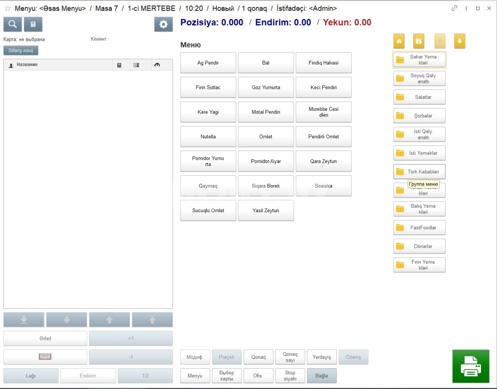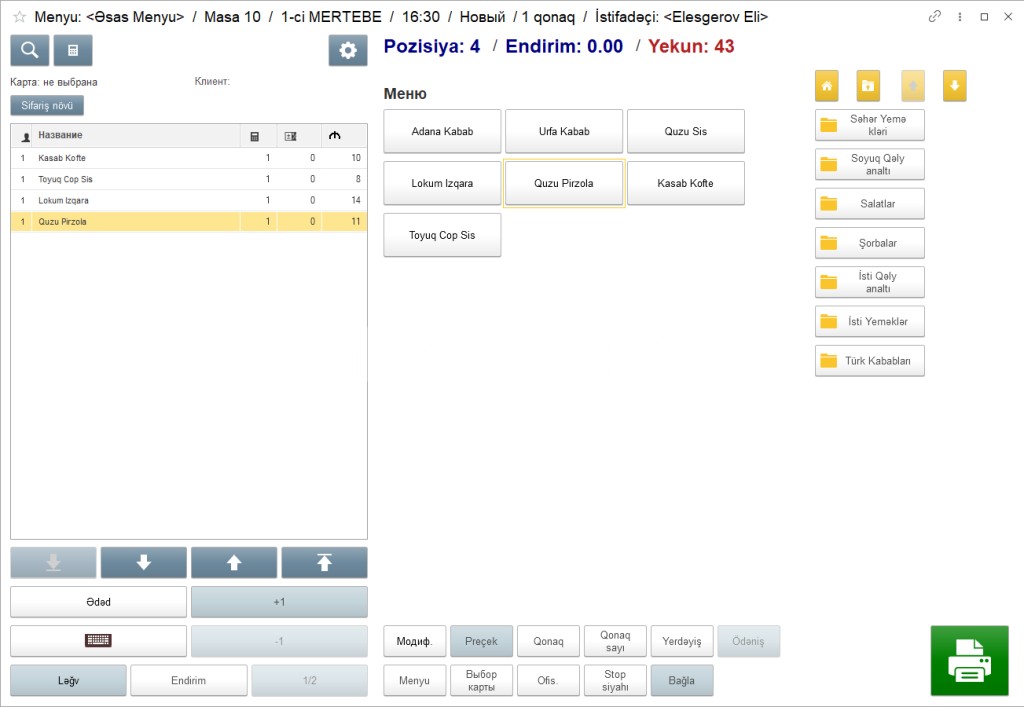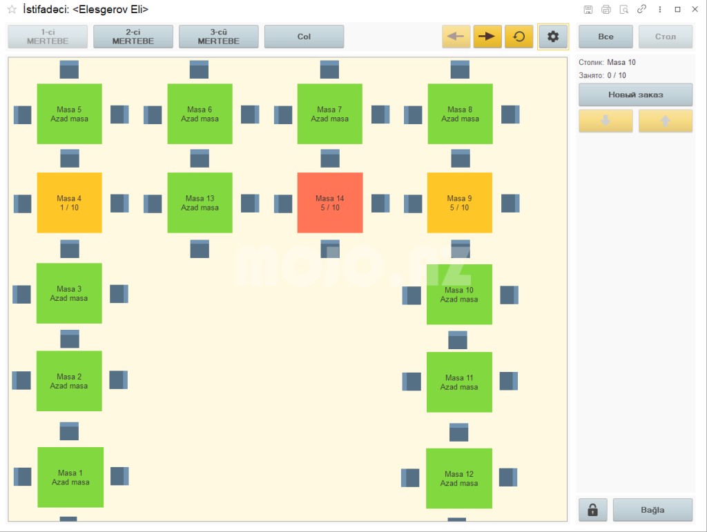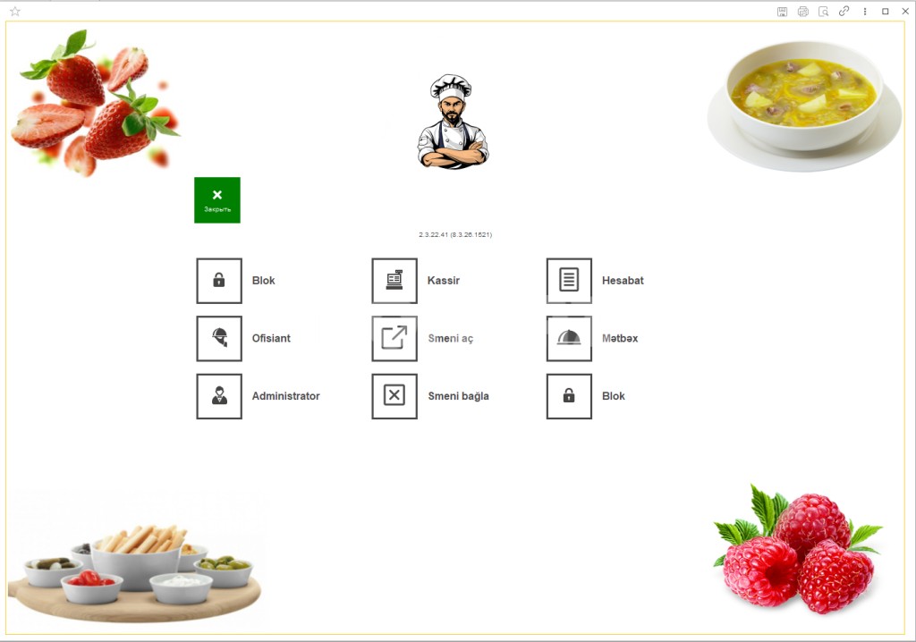 1. Hər bir işçinin (ofisiant, barmen, administrator, kassir və digərləri) özünə məxsus interfeysi və icazələri var.