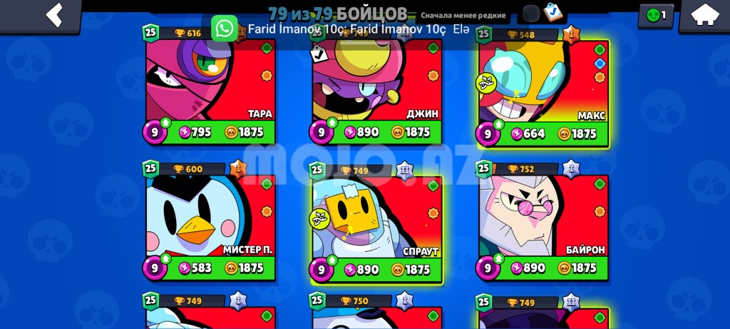 Brawl Stars hesabidir.Hesabda bütün karakterler 25 rütbədi bütün oldu kostyumlar var hesab 1 çi sezonnan oynayilir .Qiymət Sondur .Ətraflı məlumat üçün WHATSAPPDAN ƏLAQƏ Saxlaya bilərsiz
