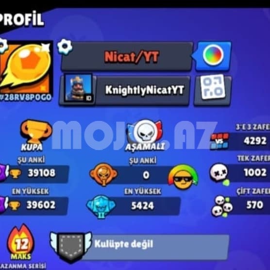 Brawl stars hesabı 39000 kupadır 26000den 39000qeder kupa yolunda heç birşey açılmıyıb hesabda 77 karaktervar 70 karakter 500 kupa ustu 20 rankdır İnstagrama yazın ad :MUSA_201E PROFİL OĞLAN UŞAĞI olan