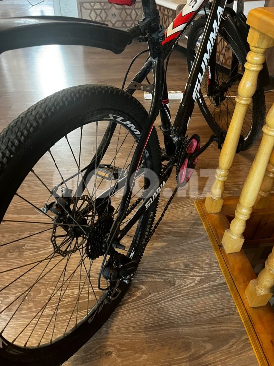 SATILIR - Velosiped SUMMA (26 ölçüdür) Təzə kimidir, uzun müddət evin içində saxlanılıb, xaricdə olduğumdan dolayı, sürülməyib, evdə, qapalı yerdə saxlamışam, getmişəm. Sürət qutusu, əyləclər işlək vəziyyətdədir. Təkərlər yeni dəyişilib, 2 ildir evdə qaldığından havası boşalıb. Bütün detalları yenilənib (oturacaq, pedallar, krila, işıqlar və s.) Siqnal, işıq üstündə verilir. Qiymətdə razılaşmaq olar.