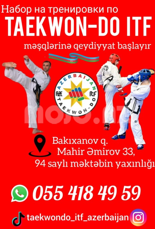 5 yaşdan yuxarı oğlan və qızları Taekwon-Do ITF məşqlərinə dəvət edirik. Ünvan: Bakıxanov qəsəbəsi, Mahir Əmirov 33, 94 saylı məktəbin yaxınlığı (Aygün Mall`dan 3 dəqiqə məsafədə) |