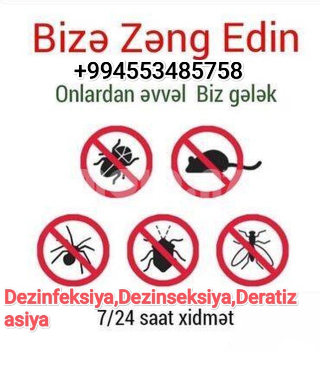 Dezinfeksiya Dezinseksiya Deratizasiya xidmetleri 7/24 tam peşəkar xidmet