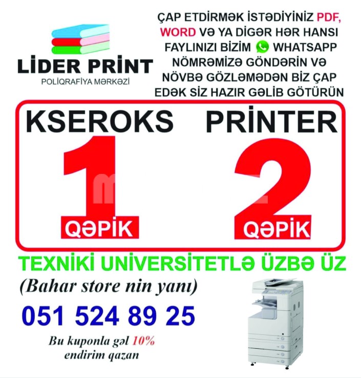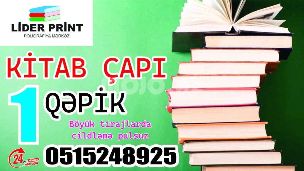 Cap etmek istediyiniz kitabinizin PDF fayli bizim whatsapp nomremize gonderin biz cap edek siz gelib vaxt itirmeden hazir mehsulun bizden tehvil alin.