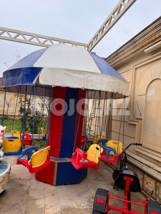 Karusel yeni yığılıb. Alkaponu,zontiki, matoru , kəndirləri də yenidir..8 nəfərlik bu əyləncə avadanlığını qaoalı mərkəzə, otel həyətlərinə, parklara və s yerlərə qiymaq olar.6 yaşa qədər uşaqlar otura bilir. Rəngli görünüşü ilə uşaqları tez bir zamanda cəlb edir. |