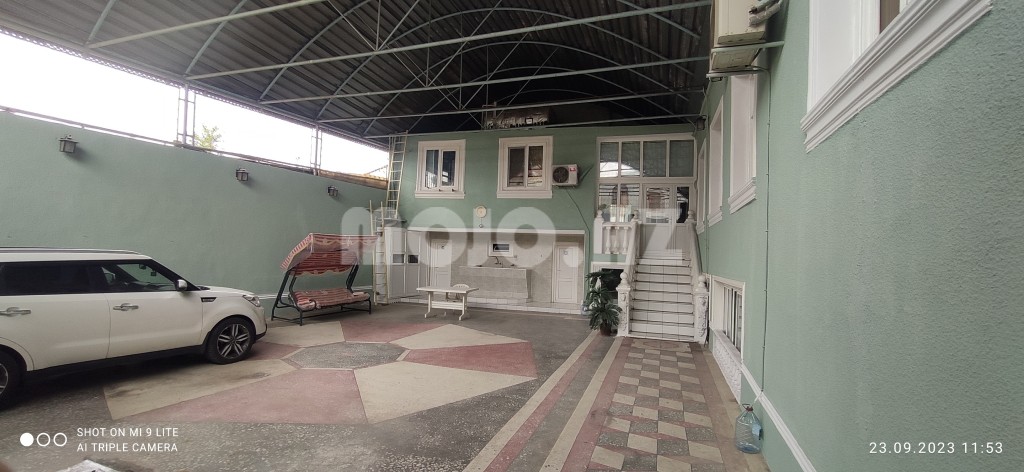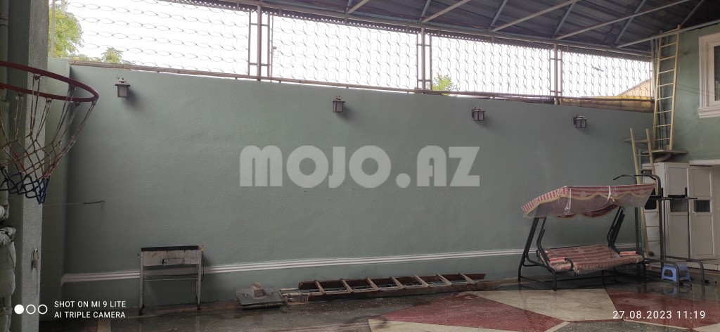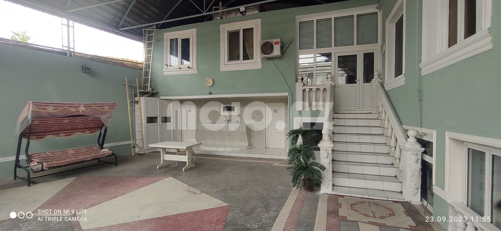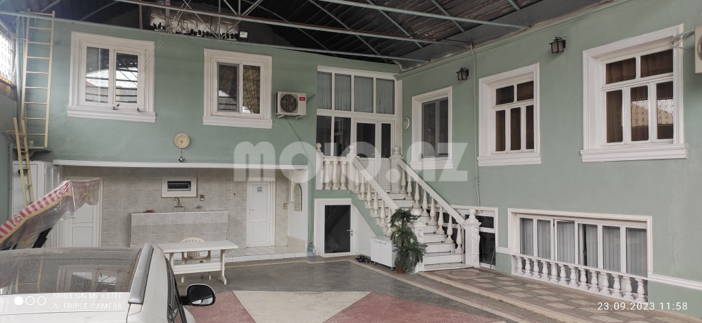 Gəncə şəhəri (vtoroy çast) Nəriman Nərimanov prospekti ev 323/bu evin əvvəlki/köhnə ünvan nömrəsi olub 231 (4 yol "Sünbül"çörək bişirmə sexindən Gülüstan qəsəbəsi tərəfə doğru 200 metrdə getməklə yolun solunda) 2 mərtəbəli yaşıl rəngli/fasadlı həyət evidir. Evin 6 ədəd yasayış, 2 ədəd mətbəxi, 2 ədəd xidməti, 2 ədəd hamam, 2 ədəd tualet otaqları və 1 ədəd mağazası var. Evin yüksək səviyyədə yaşamaq üçün bütün şəraiti var (evin yola baxan 1ci mərtəbəsində 38 m2 mağazası var). Evin hər iki mərtəbəsində ayrı ayrılıqda mətbəxtlər, hamamlar və sanitar qovşaqları var. Evin istinad/yük daşıyan divarların qalınlığı/eni 1-çi mərtəbədə 1 metr, 2-çi mərtəbəsində isə 0,80 metrdir. Evin həyətinin döşəməsi dəmir naves altında olmaqla xırda daşlardan xüsusi hazırlanmış rəngli mozaikadır. Evə gündəlik daimi gələn su yeni çəkilmiş Göy Göldən gələn təmiz ağ sudur. Evin damında Türkiye istehsalı olan 2 tonluq su plastik çəni qoyulub, evin həyətində daş/beton mozaikanın altında (yer altında) 6 tonluq su hovuzu var.Bu su hovuzuna və evə gələn ağ suyun qəbul olunmasına xidmət göstərən (yer altında/mozaika altında) ayrıca/əlavə xüsusi su nasosxana otağı var. Qış fəslində evin həyətində olan plastik su borularınin qışda şaxtadan donmaması üçün izolasiya örtüklərdən başqa/əlavə olaraq borular üzərinə elektriklə işləyən xüsusi spirallar qoşulub. Evin 1ci mərtəbəsində yerləşən iki ədəd otağın hər birinin döşəməsində dərinliyi 5 metr olmaqla dairəvi/yumuru formada divarları kərpicdən hörülmüş 2 ədəd "küpə" formasında kənd təsərrüfatı və digər məhsulların təbii yolla saxlanması quyuları var |