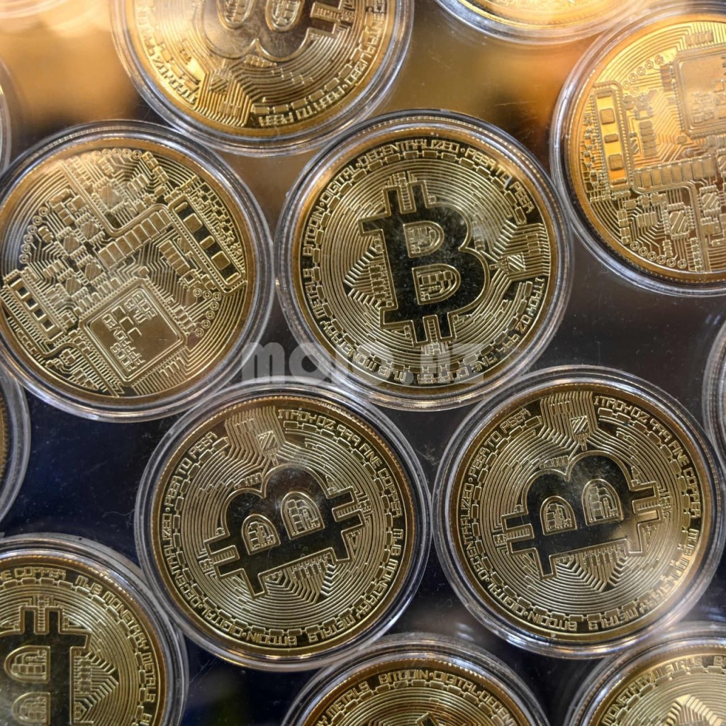 Solana, Riple, Tether, Bitcoin, Ethereum, Cardano təqlid nümunələri, fiziki formasında kriptovlyutların suvenirli xatirə sikkələri.