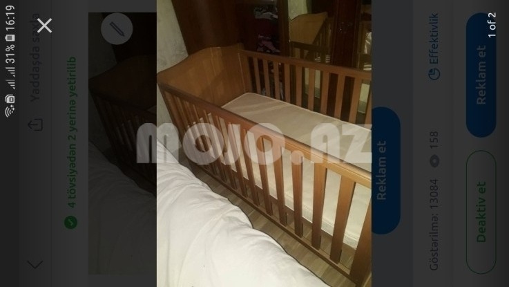 İri ve geniş, 3 hüdürlük səviyyəsinə tənzimlənə bilən, əla vəziyyətdə, ortopedik döşəkli uşaq çarpayısı