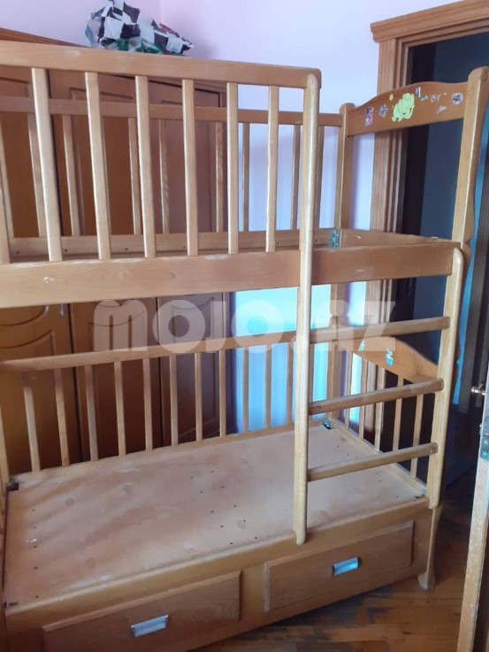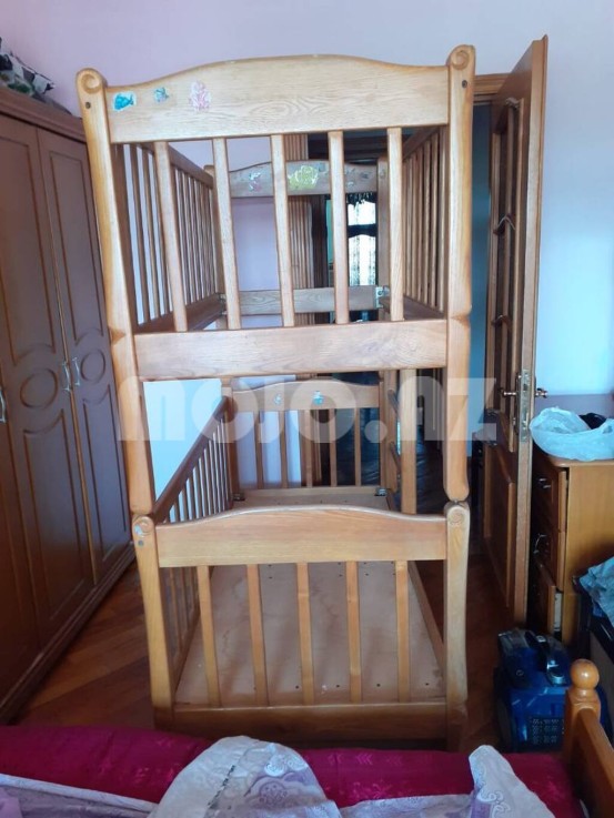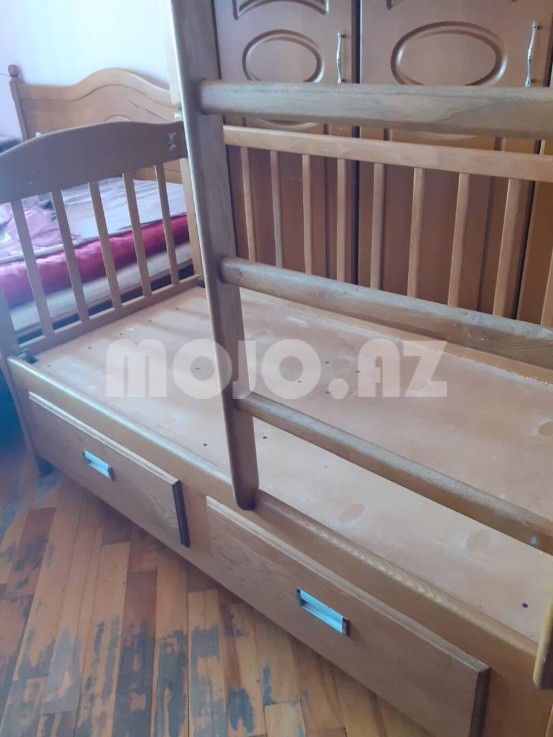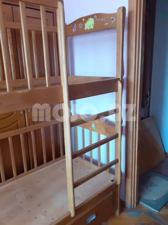 Iki mərtəbəli uşaq krovati. gğyrüş ağacından yığılıb. Yaxşı vəziyyətdədir. Uzunluq - 160 sm, Eni - 80 sm.