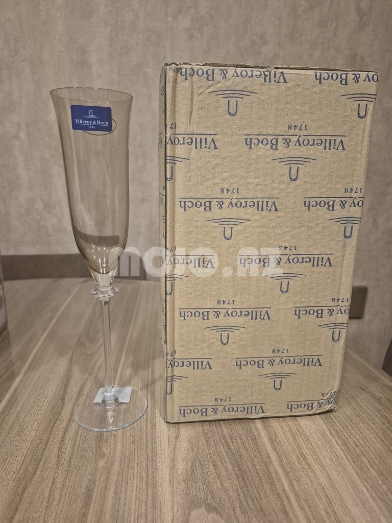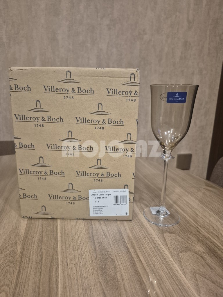 Villeroy & Boch şüşə qədəh dəsti - Brend: Villeroy & Boch Şüşə qədəhlər – 4 ədəd şampan və 4 ədəd şərab üçün - Material: yüksək keyfiyyətli şüşə - Rəng: taupe çaları ilə şəffaf - Qablaşdırma: orijinal Villeroy & Boch qutusu (etiketləri üzərində)